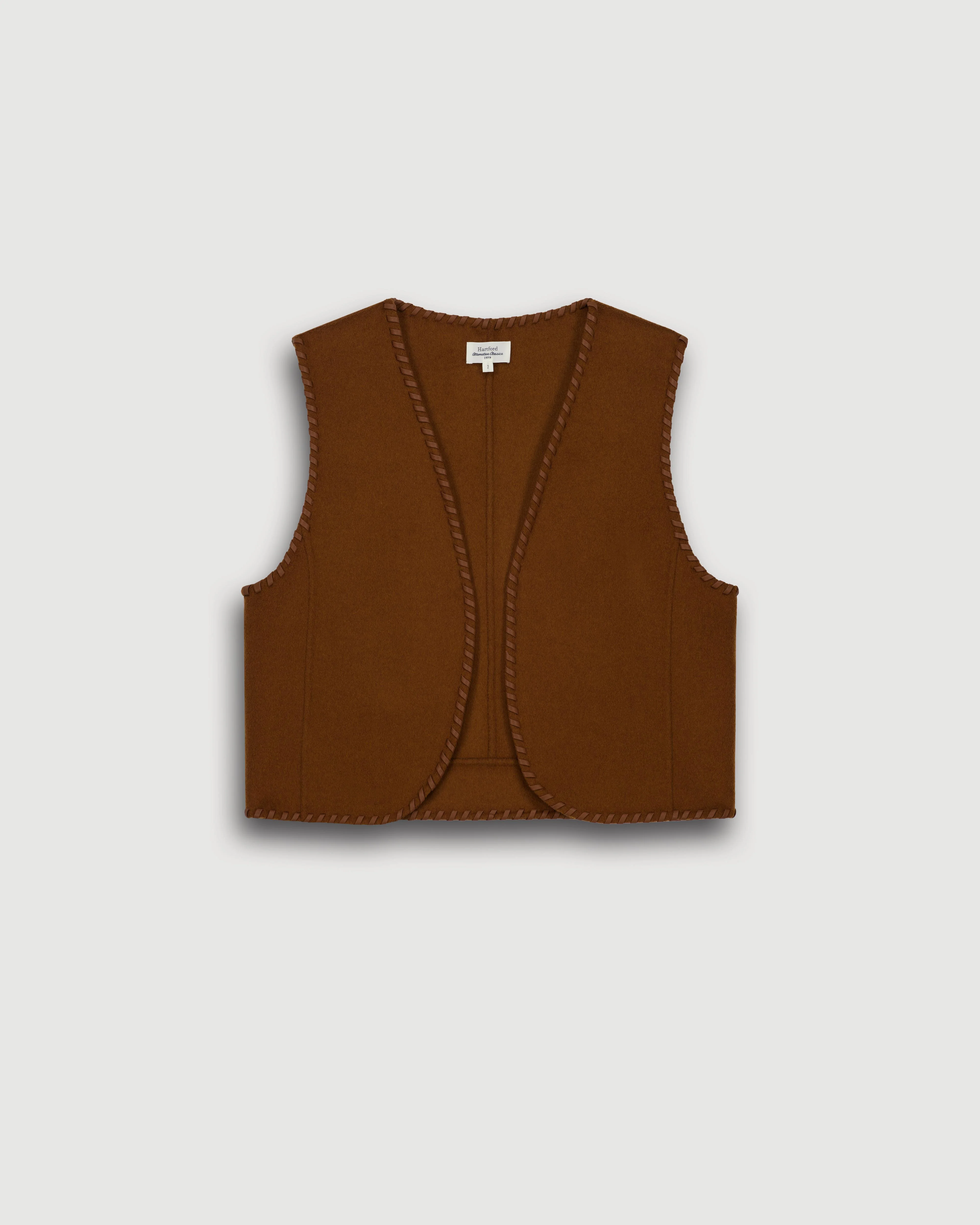 Gilet femme sans manches. Surpiqures. Détails de coutures tressées.
