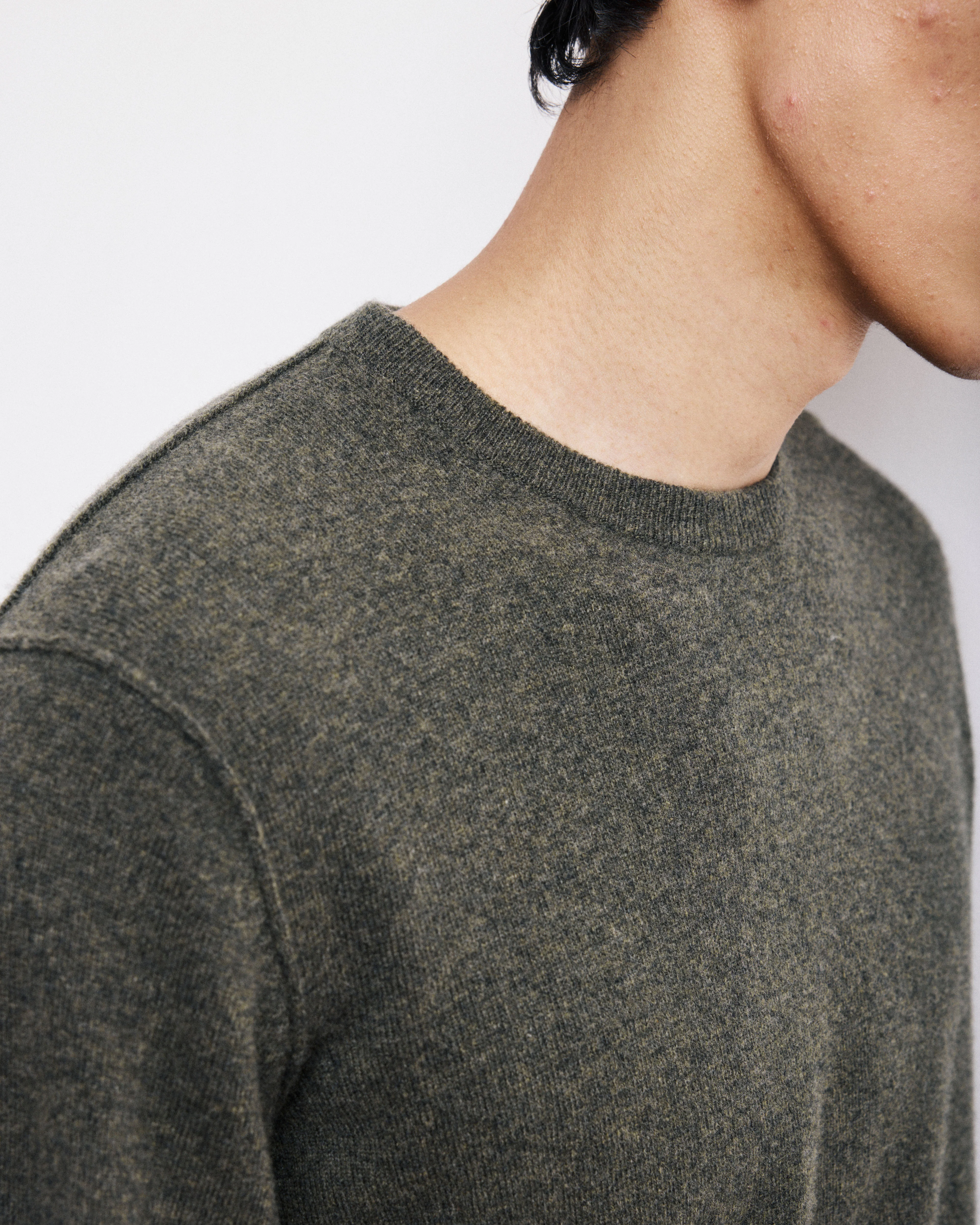 Pull Col Rond Homme en Laine & Cachemire Vert Militaire